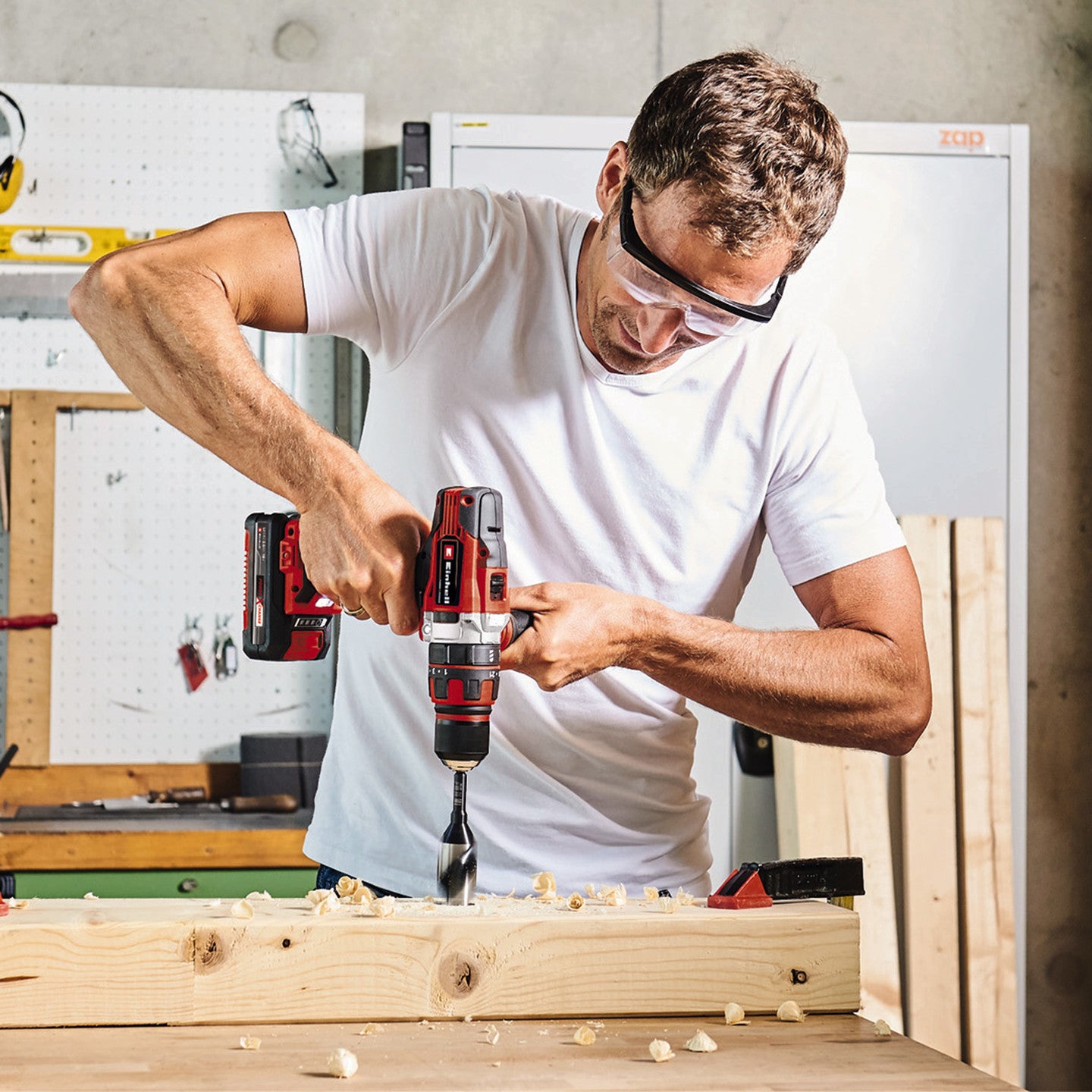 Einhell TE-CD 18/48 Li-i akülü darbeli delme / vidalama makinesi, atölyede, garajda ve evde yararlı ve güçlü bir yardımcıdır. Vidalama, delme ve darbeli delme fonksiyonu ile restorasyon ve yenileme gibi çalışmalar için tasarlanmıştır. Power X-Change ailesinin bir üyesi olarak bir elektrik prizine ihtiyaç duymadan cihazın tam gücünden