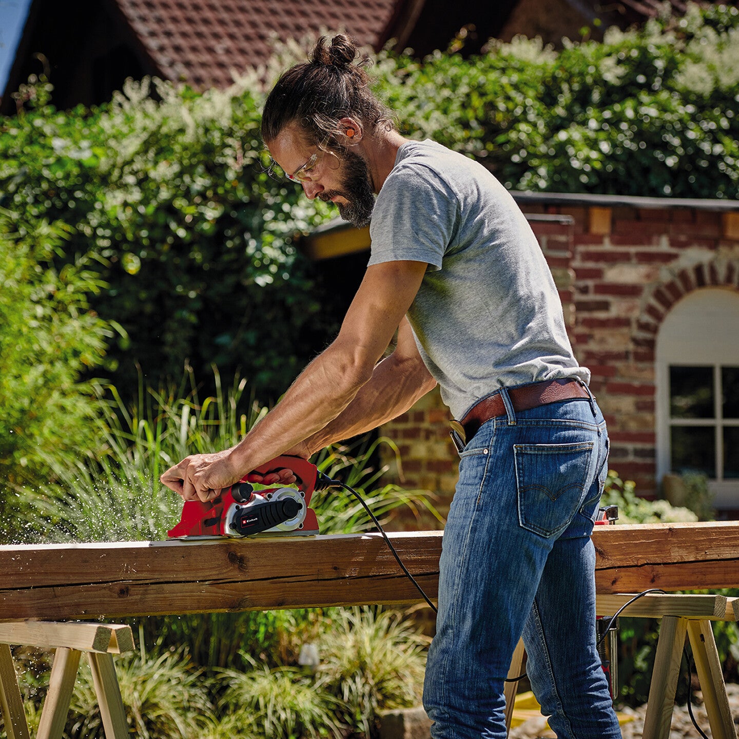 Einhell TE-PL 900, Planya, 2 mm`ye kadar talaş derinliğindeki işler için güçlü bir üründür. 900 W gücü ve 15.000 dev/dk rölanti hızı ile ahşap yüzeyleri etkin bir şekilde ele alır ve profesyonellerin hassas çalışmalarını gerçekleştirmesine yardımcı olur. Tek seferde optimum sonuçlar için geniş bir bıçak şaftı vardır. Entegre otomatik parça sabitleme desteği, güvenli bir sabitleme sağlar ve iş parçasını istenmeyen hasarlara karşı korur. Sağlam alüminyum tabanı ile iyi sonuçları alabilirsiniz. Ergonomik tutamak güvenli bir tutuş sağlarken zorlu işlerde yorulmadan çalışmanıza imkan verir. Paralellik mesnedi, derinlik ayar kılavuzu ve tersinir karbür planya bıçağı ile gelir.