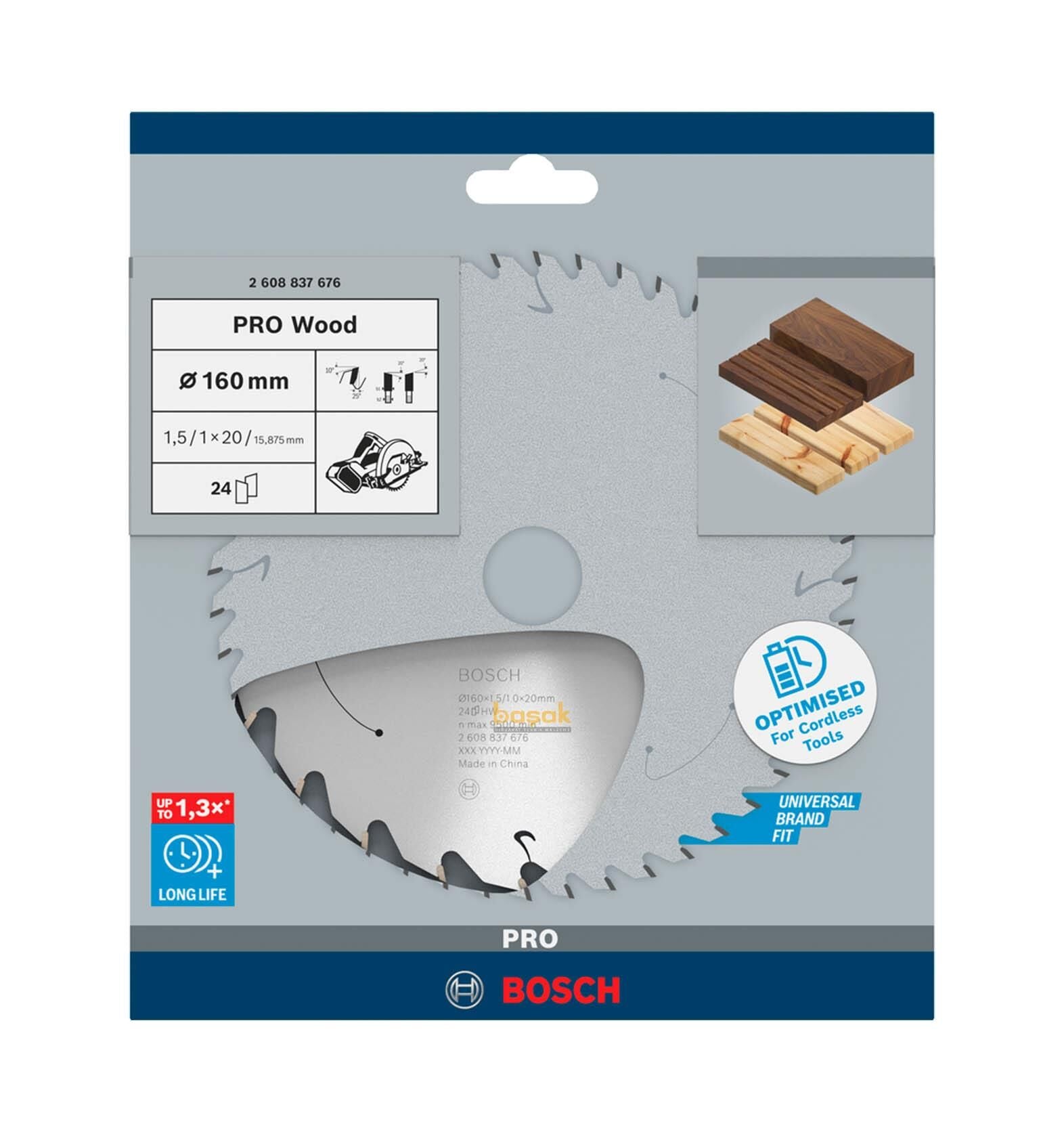 Bosch 160*20 mm 24 Diş Akülü Makineler için Ahşap Testere Bıçağı 2608837676