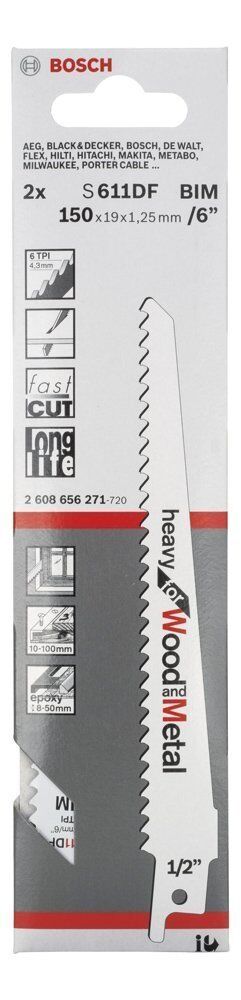 Bosch S 611 DF 100mm 2`li Ağır Hizmet Ahşap-Metal Panter Testere 2608656271