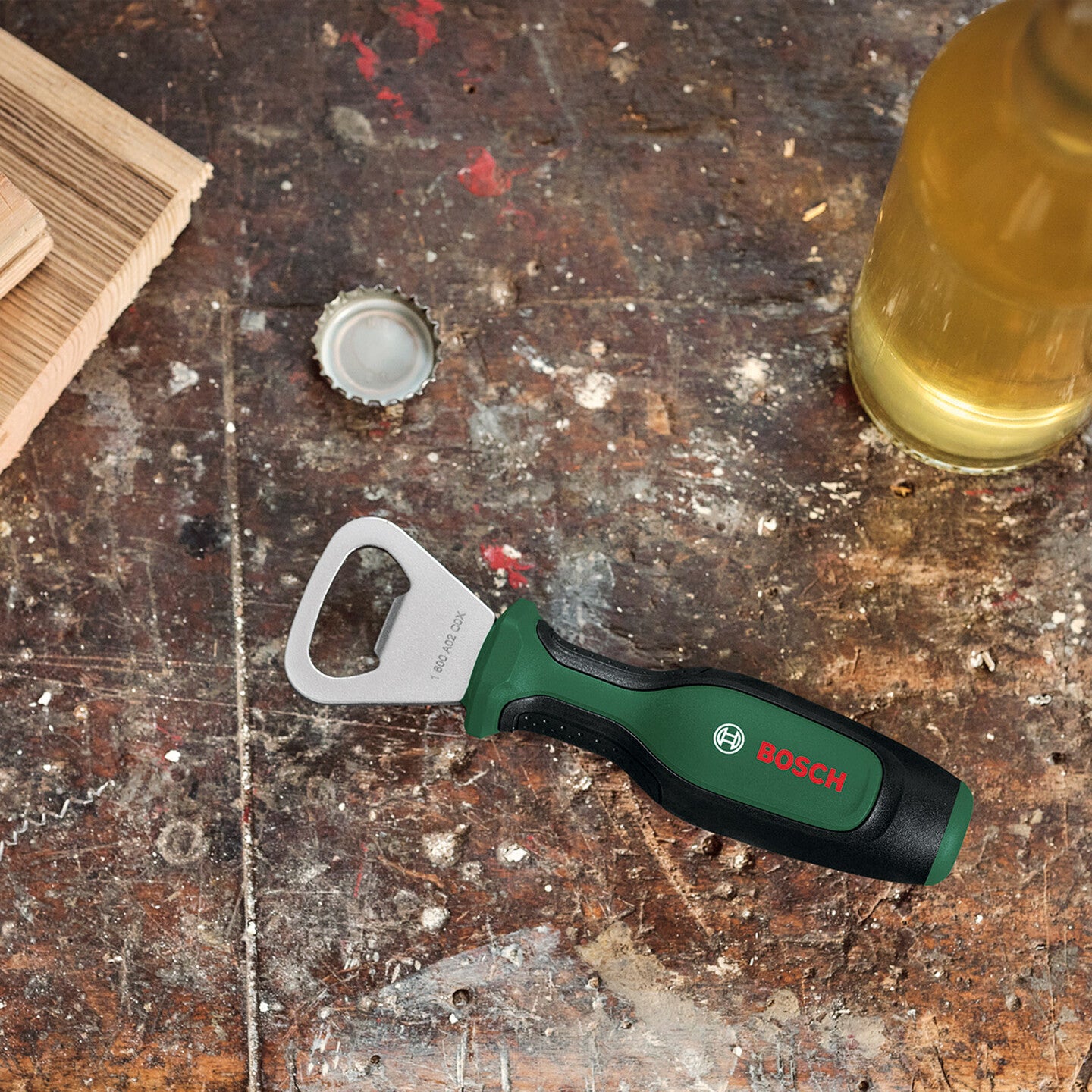 • Şişe kapağını zahmetsizce açmak için yumuşak kavramalı, iki parçadan oluşan tutamak.