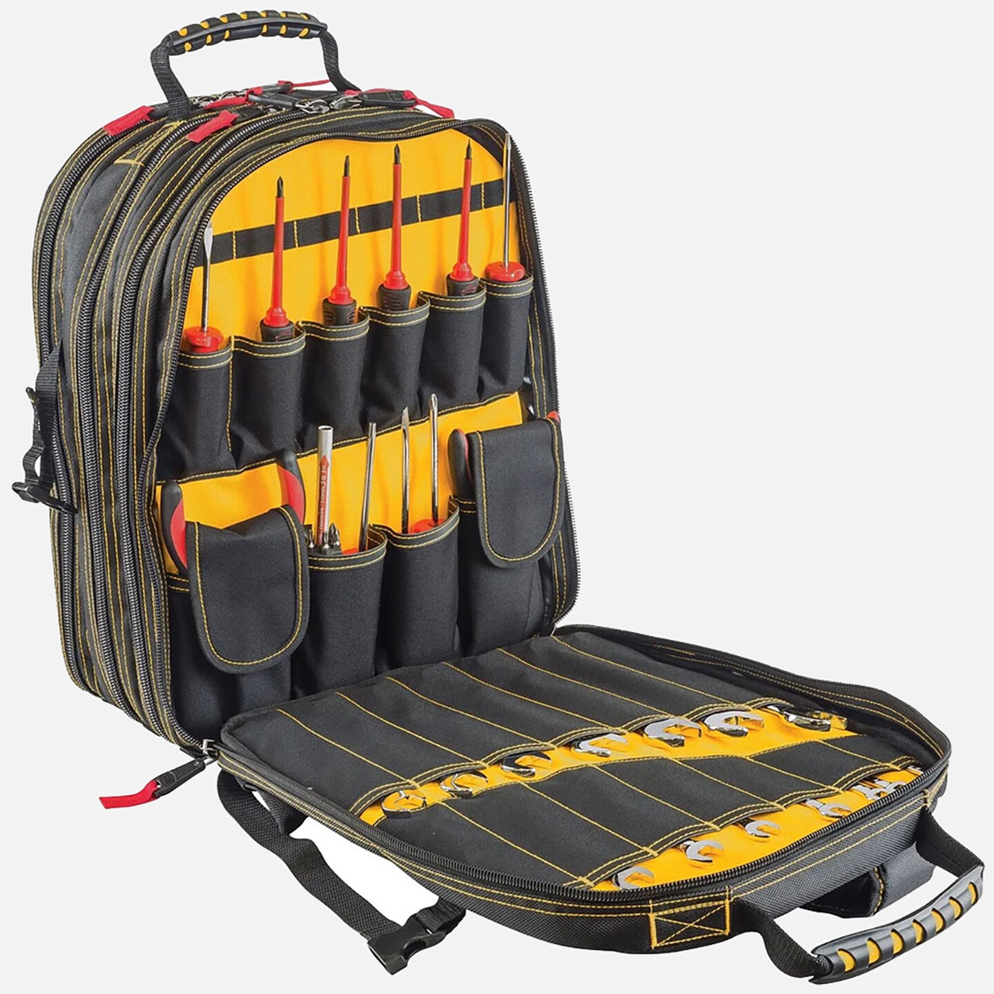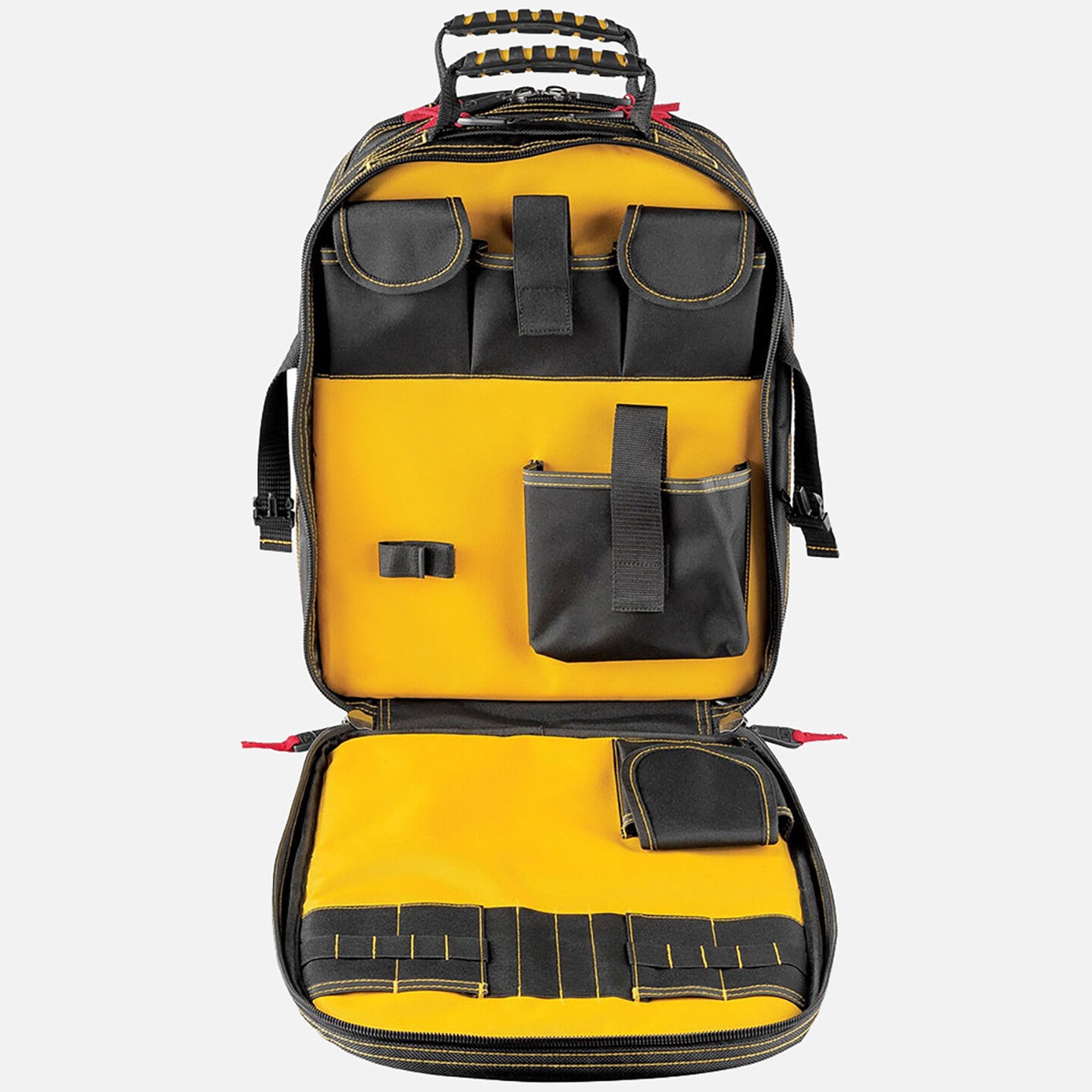 •Yüksek görünürlükteki sarı renkli iç alet saklama bölmeleri ve güçlendirilmiş taban ile aletleri ve parçaları hızlı bir şekilde bulmanıza yardımcı olur.