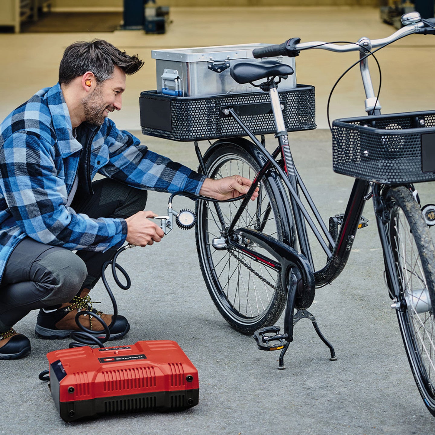 Einhell TE-AC 36/6/8 Li OF Set akülü kompresör evinizde, bahçede ve garajda veya kamp yaparken çok sayıda basit basınçlı hava işini hızlı bir şekilde gerçekleştirebileceğiniz son derece hareketli ve kompakt bir kompresördür. 6 litrelik depoya sahip mobil, yüksek performanslı kablosuz bir kompresördür. Bu sistem ailesindeki tüm ürünlerde kullanılabilen Power X-Change şarj edilebilir aküler ile çalışır. Motor yağsızdır, yani çok az bakım gerekir. Basınç regülatörü kullanılarak 8 bara kadar birçok uygulama ayarlanabilir. Çalışma basıncı, bir basınç göstergeli saat ile düzenlenir ve quick kaplin ile kolayca bağlanır. Ergonomik, kolay taşınabilen optimum tasarıma sahiptir. Tahliye tapası sayesinde bakımı kolay kullanıcı dostu bakım bir cihazdır. Destek ayakları titreşimi emer ve sabit bir duruş pozisyonu sağlar. Emniyet valfi yüksek düzeyde kullanıcı güvenliği sağlar. 2.5 metre uzunluğunda pratik, yüksek kaliteli basınçlı hava hortumu vardır. Hava tabancası, lastik basınç göstergesi ve 8 parçalı adaptör seti de ürünle birlikte verilir. Tank, paslanmaya karşı on yıl garantilidir. Bu ürün aküsüz ve şarj cihazı olmadan gelir. Bunlar ayrı olarak satın alınabilir.