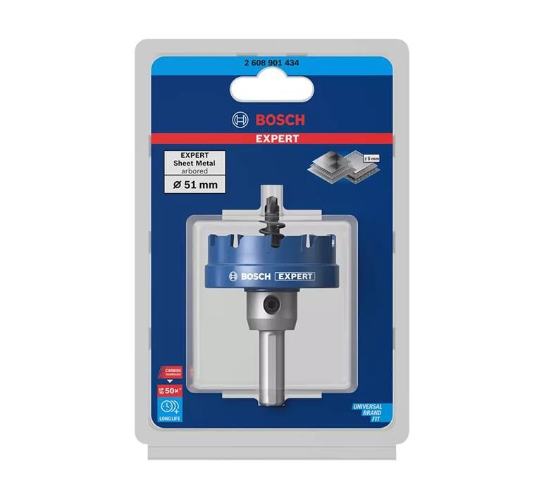 Bosch Expert 51 mm kendinden adaptörlü panç çelik, paslanmaz çelik, inox vb. sert metallerin delik işlerinde mükemmel performans gösterir.