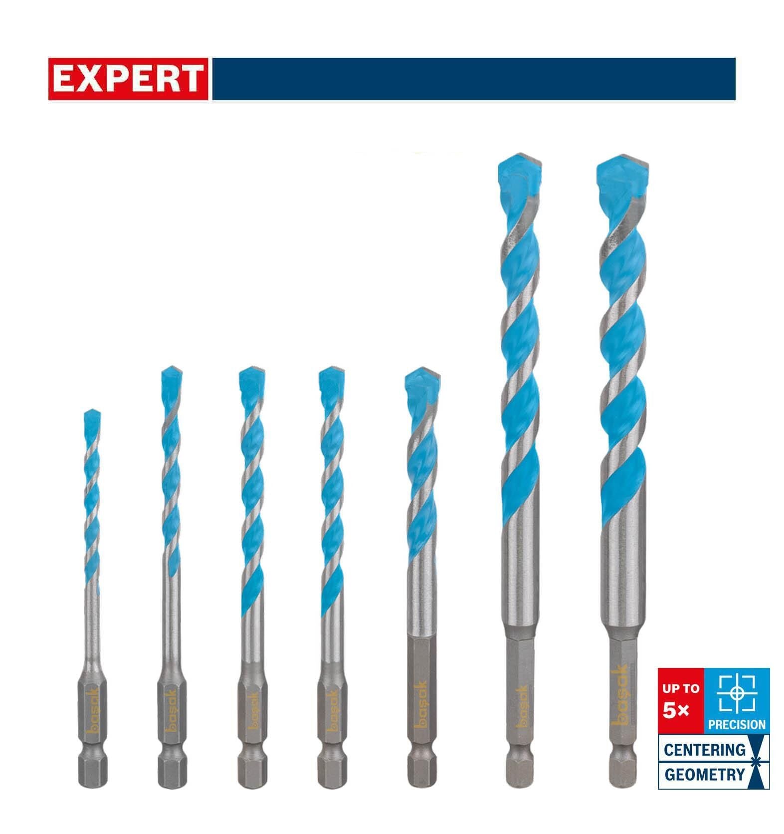 Bosch Expert HEX-9 7`li çok amaçlı matkap ucu seti ile asla yarı yolda kalmazsınız, beton, fayans, metal, ahşap ve plastik malzemelerin hepsini yüksek hassasiyette delme yapabilirsiniz.