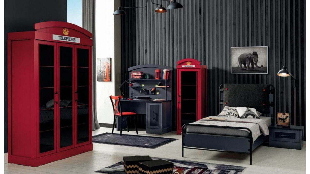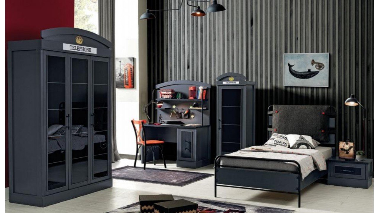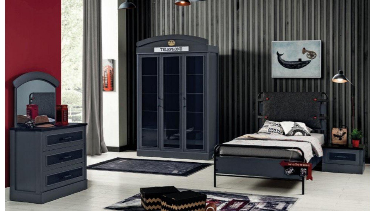 Takım İçeriği 100*200 Başlıklı Karyola, 3 Kapaklı Dolap ve Komodin vardır.