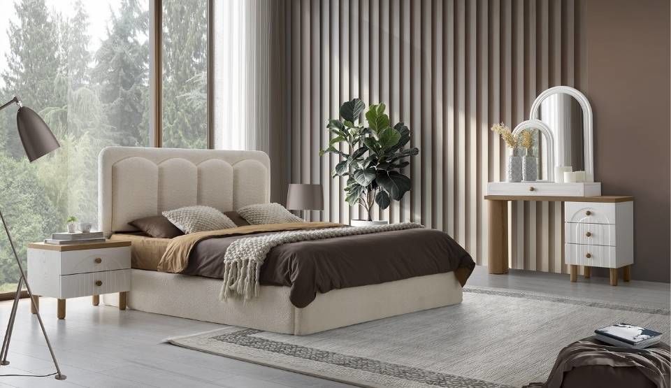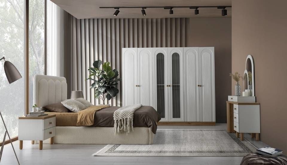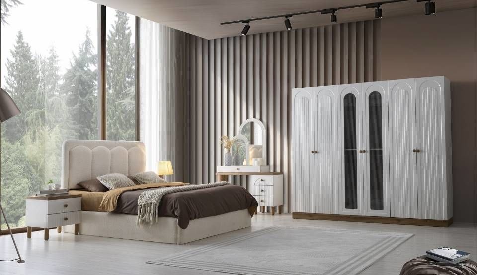 Yatak odası takımı içerisinde Dolap, Aynalı Şifonyer, 2 Adet Komodin ve Başlık bulunmaktadır.