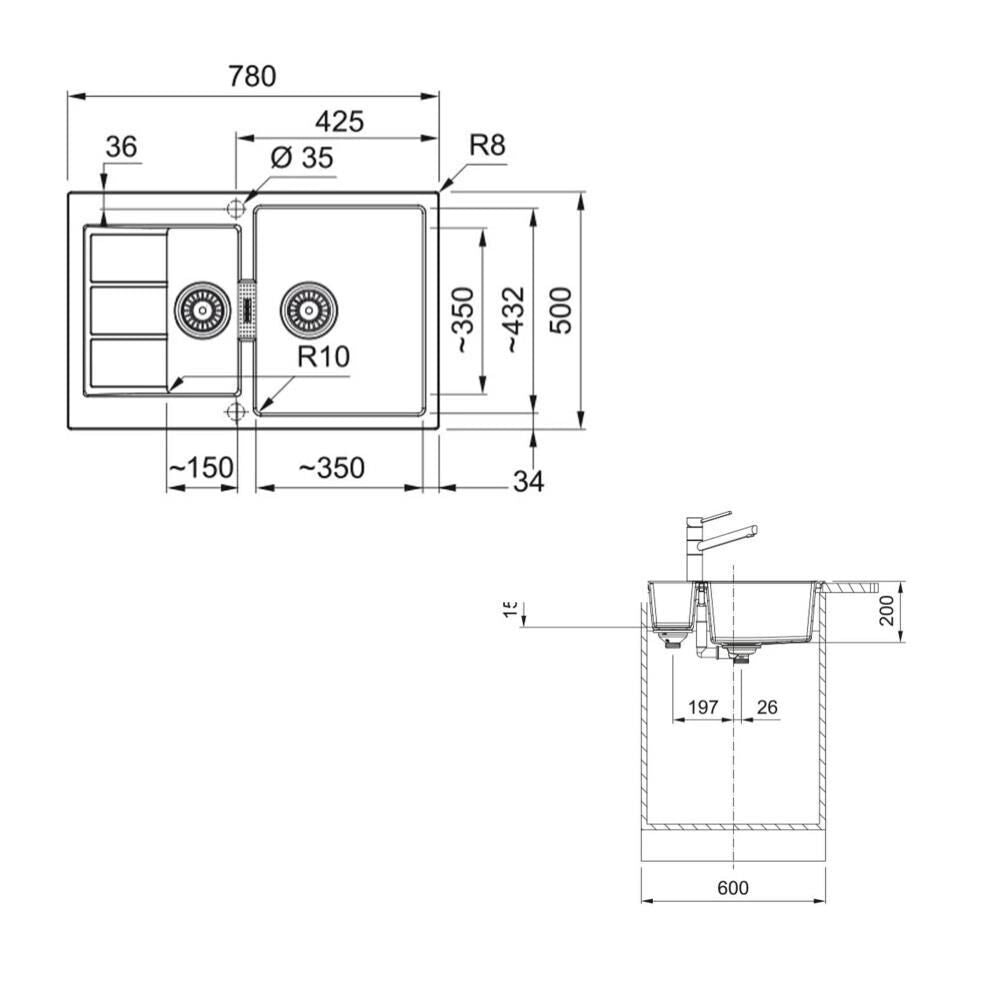 Franke Tectonite S2D 651-78 PW Evye - Franke Active Plus Doccia 2.0 Bianco Armatür Set