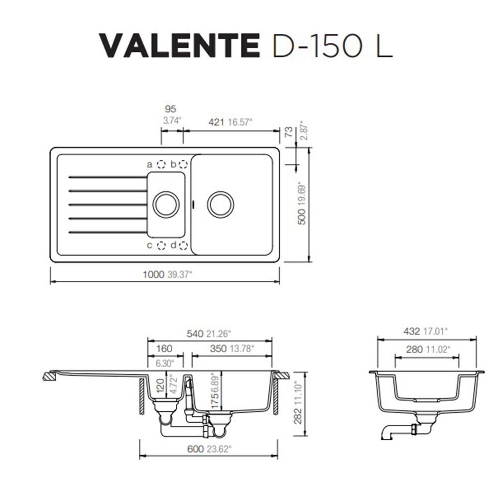 Ukinox Valente D-150 L 1.5 Göz Siyah Granit Eviye