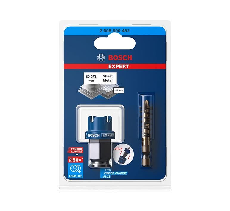 Bosch Carbide Teknolojisine sahip 21 mm Expert panç çelik, paslanmaz çelik, inox vb. sert metallerin delik işlerinde mükemmel performans gösterir.