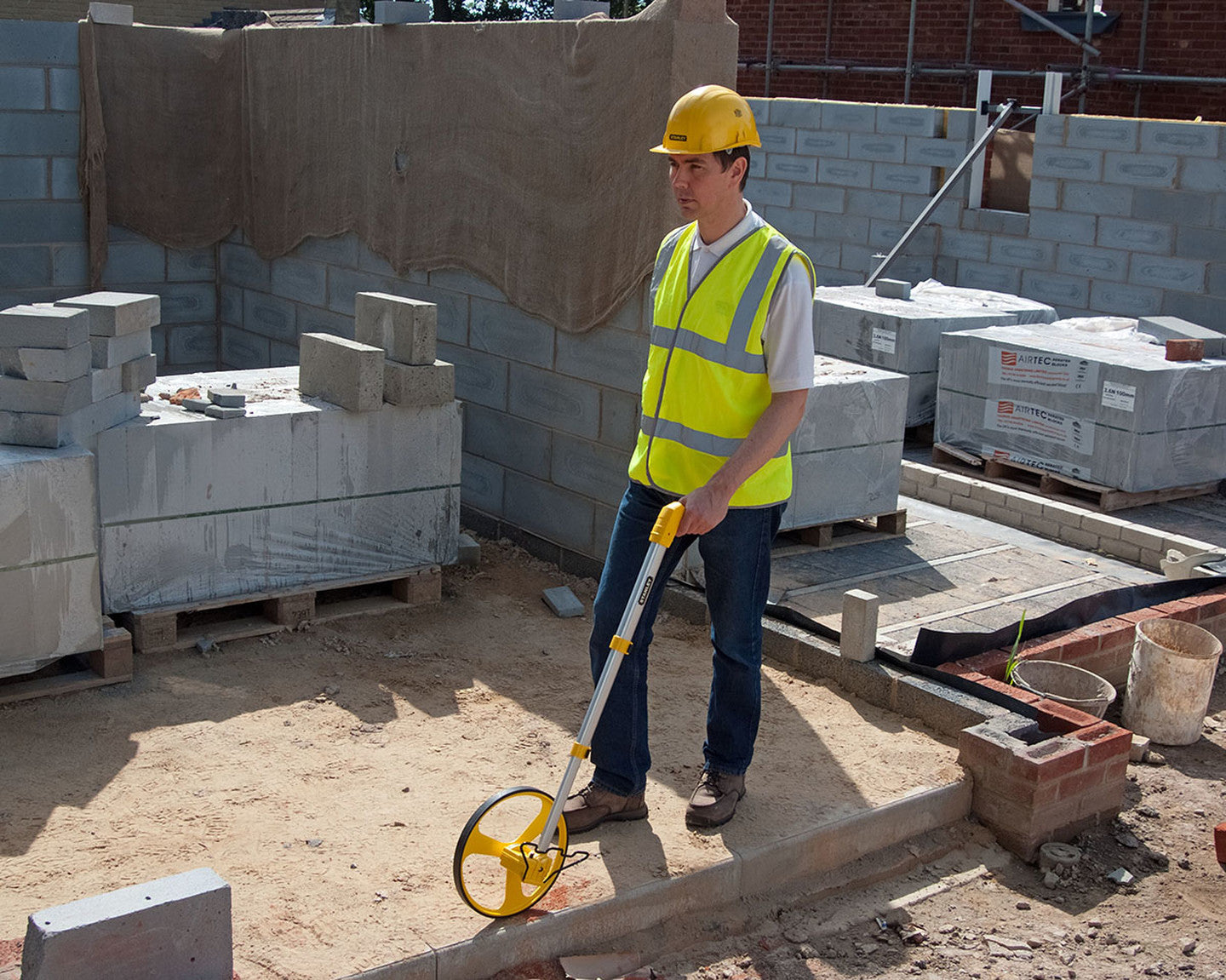Ayak ve el ile kıvrılan dayanıklı ölçme çarkı sayacı. Sıfırlama düğmeli 5 basamaklı sayaç. Sağlam sayaç yuvası. Kolay muhafaza için lastik kulplu uzun ömürlü metal kıvırma sapı. Metal ayak; pres dökme alüminyum çark; aşınmaz lastik tırtıl. Teleskopik saplı Taşıma çantası ile taşıma kolaylığı sağlar. Çözünürlük: 10 cm Teker Çark Çapı: 318 mm