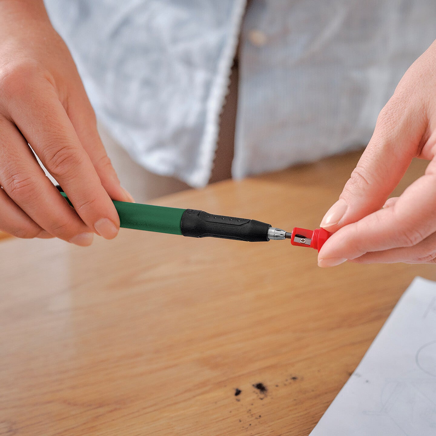• Kalem, entegre kalemtıraş sayesinde her zaman sivri uçlu ve kullanıma hazırdır.