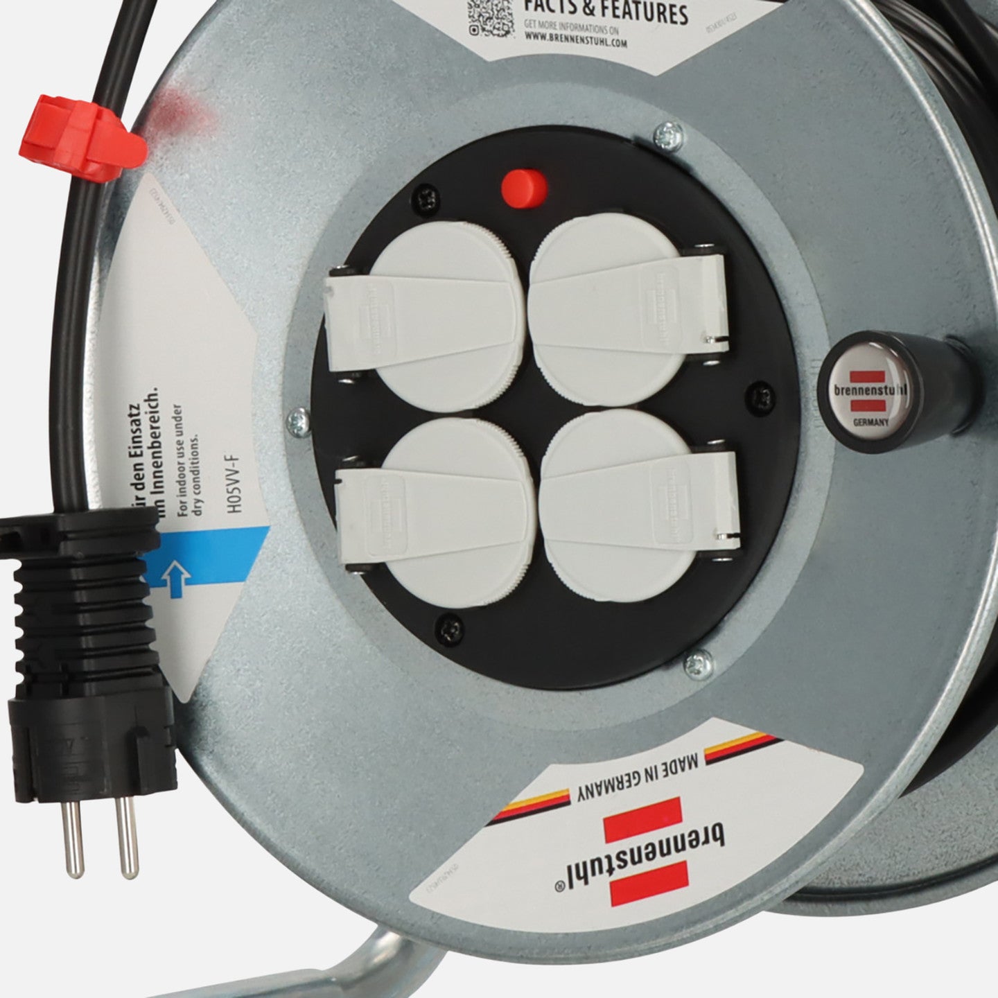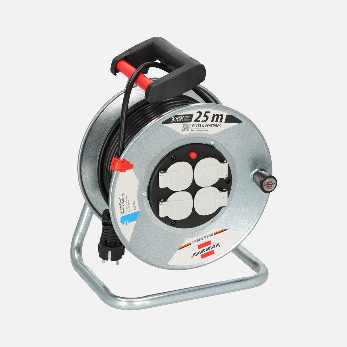 Brennenstuhl® Garant S 4 E Kablo Makarası , 25 m uzunluğundaki kablosu (H05VV-F 3G1,5) ile iç mekan kullanımı için ideal bir çözümdür. Ergonomik sap ve döner mili sayesinde kabloyu rahatça sarıp açabilir, kablonun dolaşmasını önleyebilirsiniz.