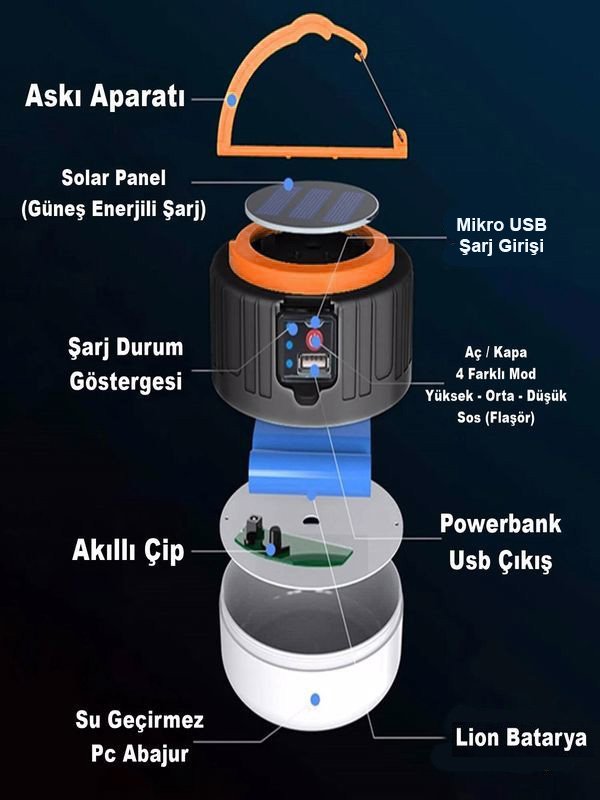 - Askı aparatı sayesinde çadır, kamp gibi aktivitelerde güvenle kullanabilirsiniz.