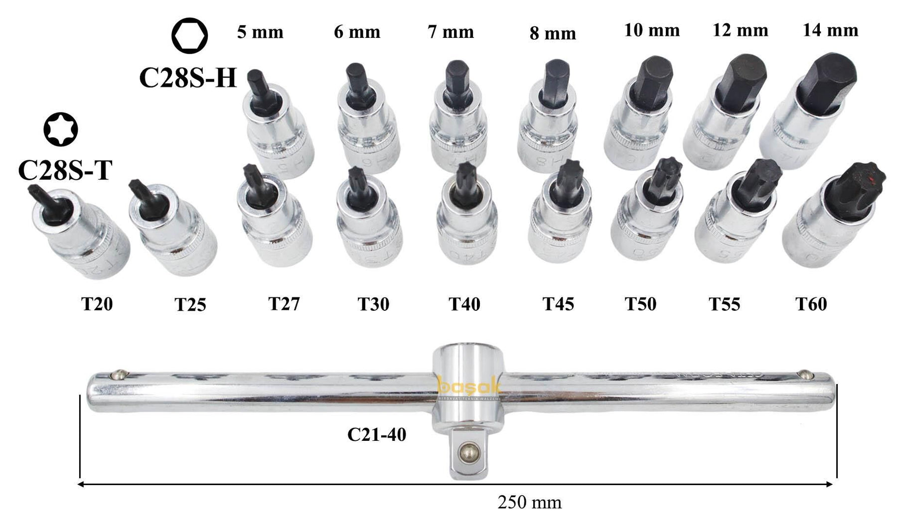 C28S-T = 1/2 Torx Lokmalar; T20, T25, T27, T30,T40, T45, T50, T55, T60
