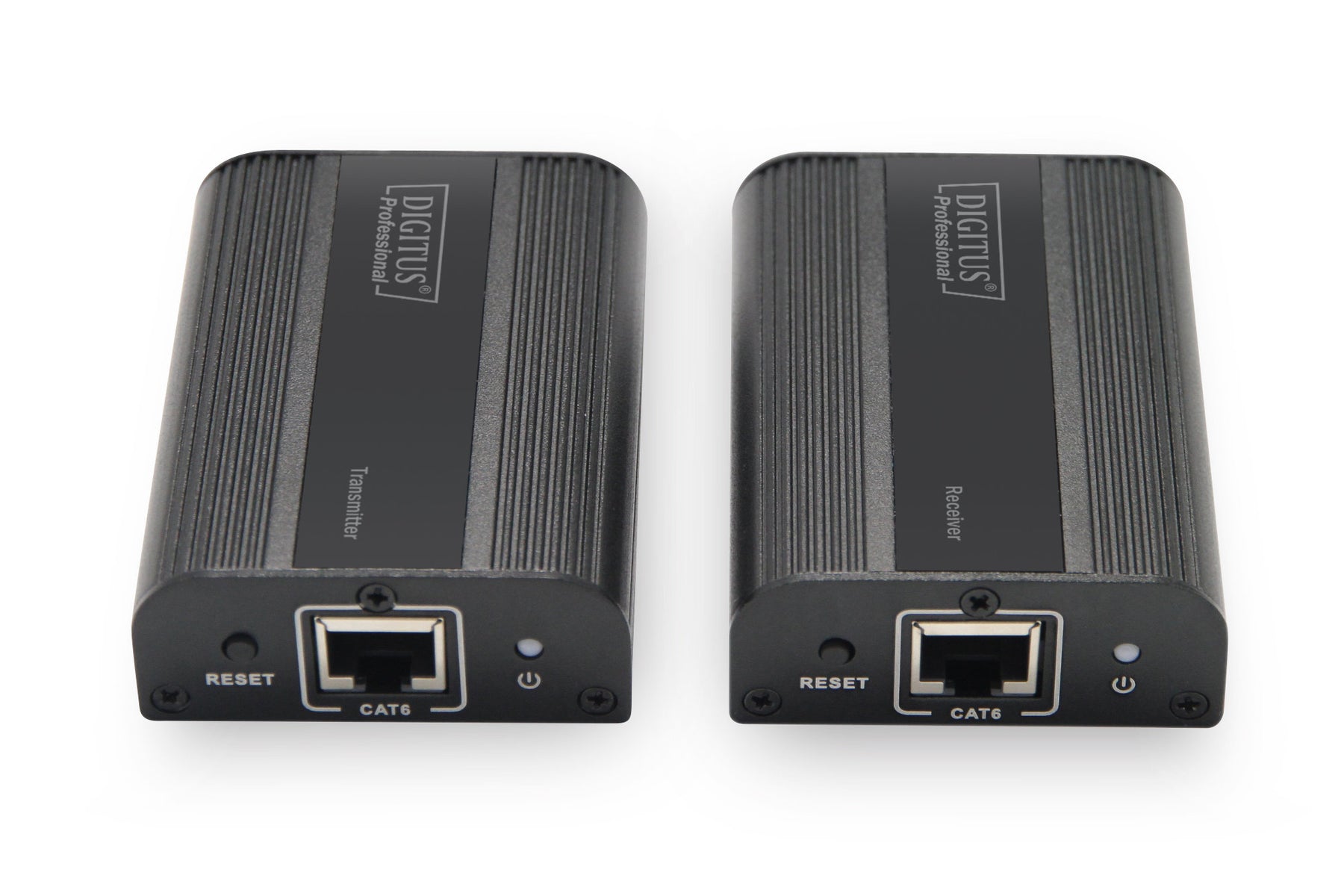 Digitus HDMI Sinyal Uzatma Cihazı, 1 x Alıcı (Receiver), 1 x Verici (Transmitter) Birim dahil, maksimum 60 metre, UHD 4K2K/60 Hz, HDMI 2.0, HDCP 2.2 Digitus 4K HDMI 2.0 Extender Set, UHD 4K/60 Hz 70 m via CAT6 or higher