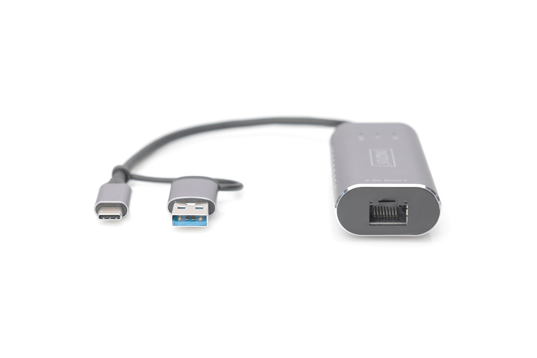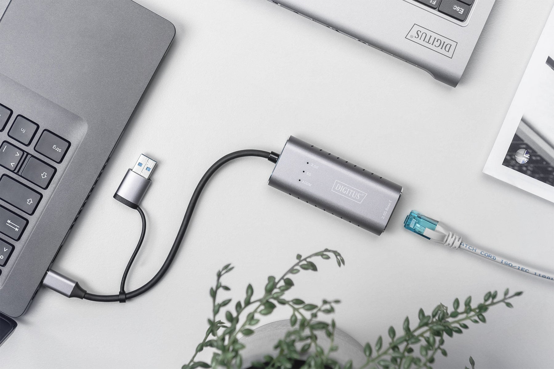 Digitus USB Tip C™ Gigabit Ethernet Adaptörü 2.5G, USB-C™ + USB-A (USB 3.1/3.0) (DN-3028)